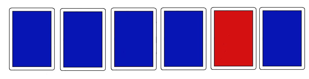 Tarvitset yhteensä kuusi pelikorttia. Viisi korttia on sinitaustaisia, kuudes on punataustainen. Yksi sinitaustainen on maa-arvoltaan hertta ja loput ovat patoja tai ristejä. Korttien arvot yhdestä kuuteen tuovat temppuun selkeyttä, vaikka kortit eivät ole pöydällä numerojärjestyksessä. Sinitaustainen herttakortti voi olla arvoltaan mitä tahansa yhdestä kuuteen. Samoin punataustainen patakortti voi olla mitä tahansa, kunhan se ei ole arvoltaan sama kuin sinitaustainen herttakortti, eikä mikään muukaan viidestä muusta kortista.
