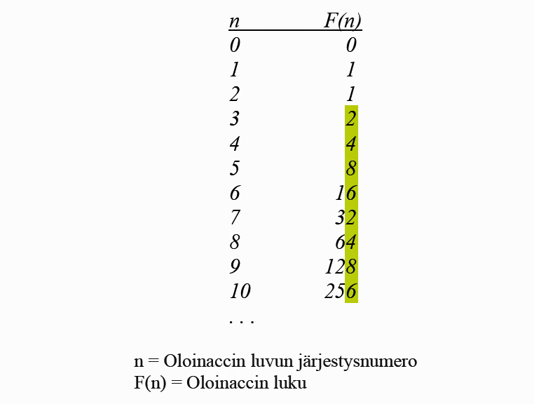 Tietty Oloinaccin luku saadaan laskettua myös yksinkertaisella kaavalla: