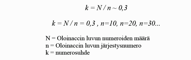 Kun Oloinaccin luvun numeroiden määrä N jaetaan Oloinaccin luvun järjestysnumerolla n saadaan aina tulokseksi likimäärin 0,3. Kuitenkin kun Oloinaccin luvun järjestysnumero on tasakymmen saadaan aina täsmälleen 0,3.