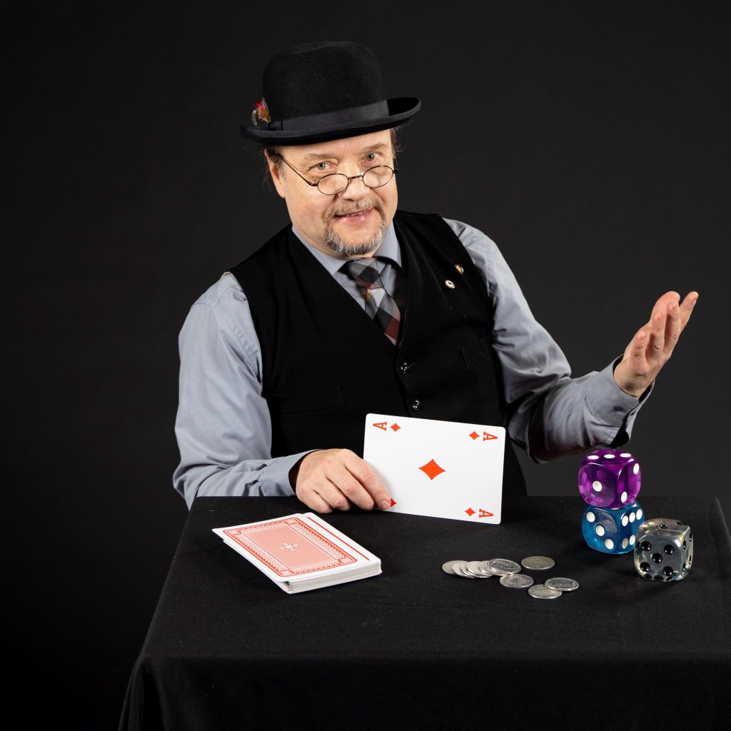 Niinpä. Taikurina olen esiintynyt jostain 1990-luvun puolesta välistä saakka ja toiminimen tälle työlle perustin muistaakseni keväällä 2007. Tietokirjailija-tittelin saa Suomessa anottua, jos on kirjoittanut kaksi kirjaa, jotka eivät ole fiktiivisiä tarinoita. Taikatemput eivät näemmä olleet fiktiivisiä tarinoita, vaikka monilla tempuilla jokin tarina, usein historiallinen sellainen, onkin. Matemaagikko-sanan keksi tamperelainen mentalisti Jose Ahonen. Englannin kielessä on sanayhdistelmä Mathemagic. Royal Vale Heath kirjoitti vuonna 1933 tuonnimisen kirjan. Myöhemmin sanaa on hyödynnetty kaikissa tilanteissa, joissa matematiikkaa ja taikatemppuja on yhdistetty. Suomennosta tuolle ei ole ollut. Jose keksi matemaagikko-sanan kuvaamaan henkilöä, joka on erikoistunut tekemään matemaattisia taikatemppuja. Hän lähetti minulle ideansa 3. helmikuuta 2024 keskellä yötä ja antoi samalla luvan ideansa käyttöön. Otin tittelin vastaan ylpeydellä. Ja kukapa muu tätä voisi edes käyttää!