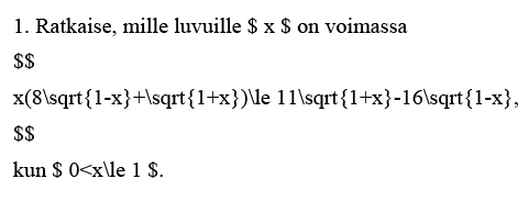 1. Ratkaise, mille luvuille $x$ on voimassa